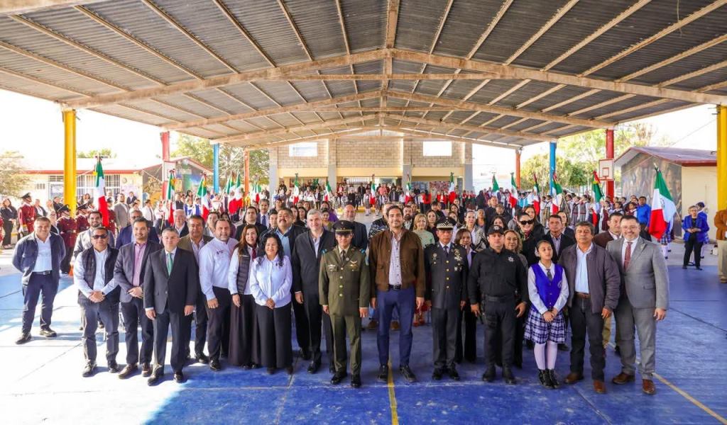 Reynosa, Tam.- El Presidente Municipal Carlos Peña Ortiz participó este día, martes 24 de febrero, en la Ceremonia Cívica del Día de la Bandera de México 2026, acompañado por el Teniente Coronel Francisco Javier Delgado Gil, Segundo Comandante del 19° Regimiento de Caballería Motorizado de la Octava Zona Militar y el Diputado Local Juan Carlos Zertuche Romero, en la escuela primaria Escudo Nacional, que dirige el Profesor Rodolfo Herrera Vázquez.