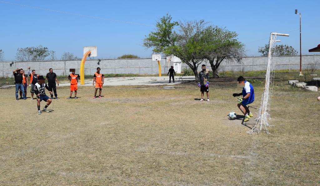 Güémez, Tamaulipas.- Al ser el deporte uno de los ejes en la estrategia de reinserción social implementada por la Dirección de Ejecución de Medidas para Adolescentes (DEMA) de la Secretaría de Seguridad Pública de Tamaulipas (SSPT), integrantes de la Selección Juvenil Correcaminos UAT, el Colegio de Bachilleres del Estado de Tamaulipas (COBAT) y el municipio de Güémez llevaron a cabo un cuadrangular de futbol con menores de edad en conflicto con la Ley Penal.