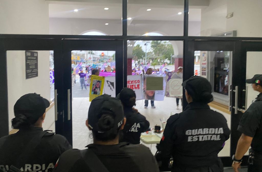 Durante el desarrollo de la marcha, el personal de seguridad mantuvo presencia preventiva en el área con el objetivo de resguardar el orden público y permitir el desarrollo de la manifestación.