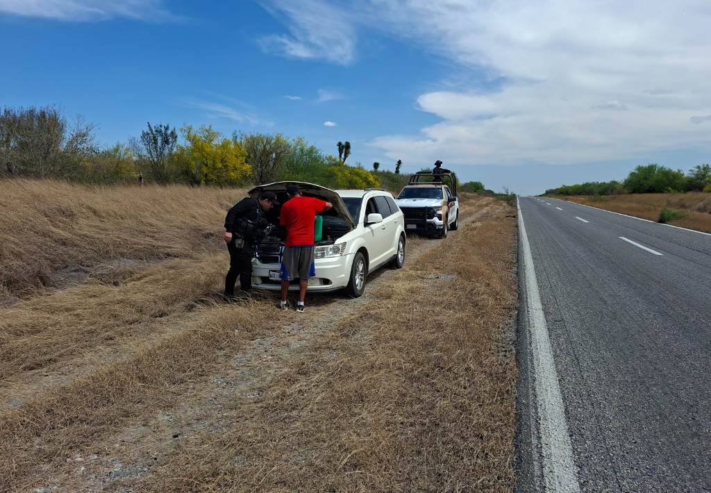 Padilla, Tamaulipas.- Al implementar el operativo “Carretera Segura” sobre la vía federal 101 Victoria-Matamoros, personal de la Guardia Estatal de Apoyo Carretero comisionado a la Estación Segura Vicente Norte brindó asistencia a un conductor que viajaba desde el municipio de Jiménez con destino a Ciudad Victoria.