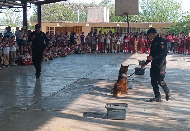 La actividad fue organizada por personal del Agrupamiento Canino de la Dirección de Agrupamientos Policiales, quienes acudieron al plantel para realizar ejercicios demostrativos dirigidos a estudiantes y docentes.