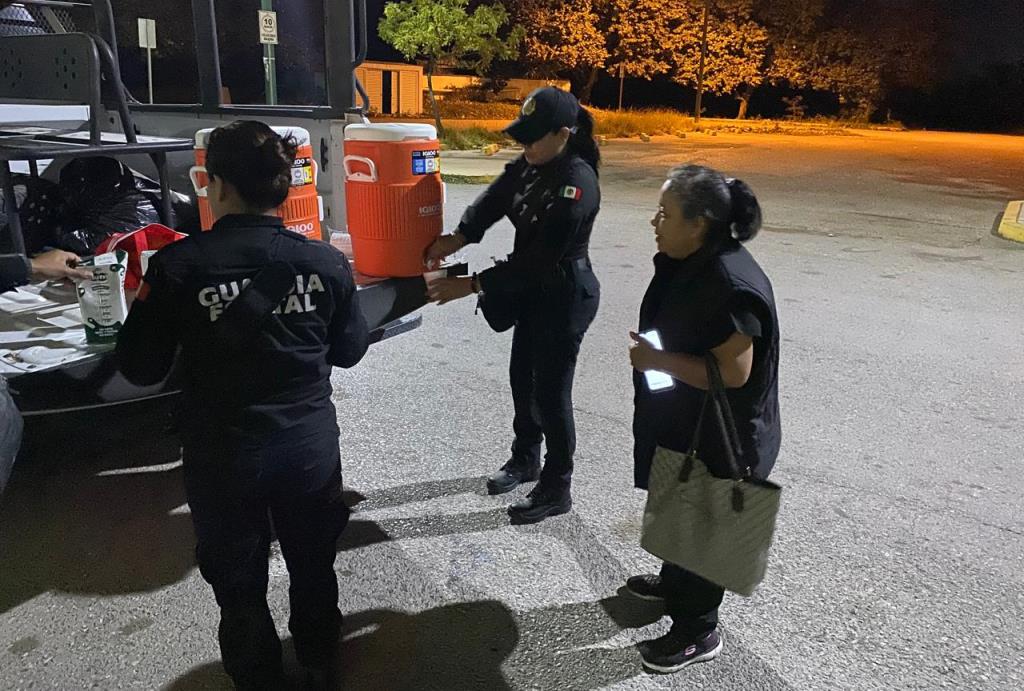 Con el objetivo de ayudarles a mitigar el frío, se les proporcionaron bebidas calientes, además, se realizaron recorridos de vigilancia en los alrededores para preservar la seguridad.