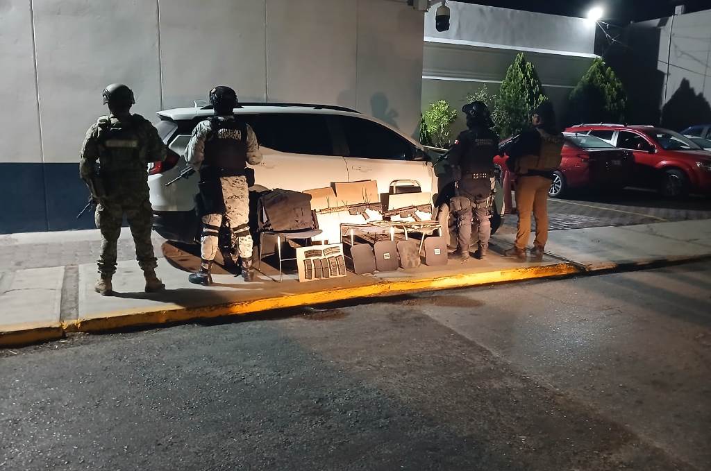 El vehículo fue encontrado en la Zona Centro con las puertas semiabiertas, al inspeccionarlo, se encontró en su interior dos chalecos tácticos con cuatro placas balísticas, dos armas largas, siete cargadores y 59 municiones, los cuales fueron puestos a disposición de la Fiscalía General de la República (FGR).