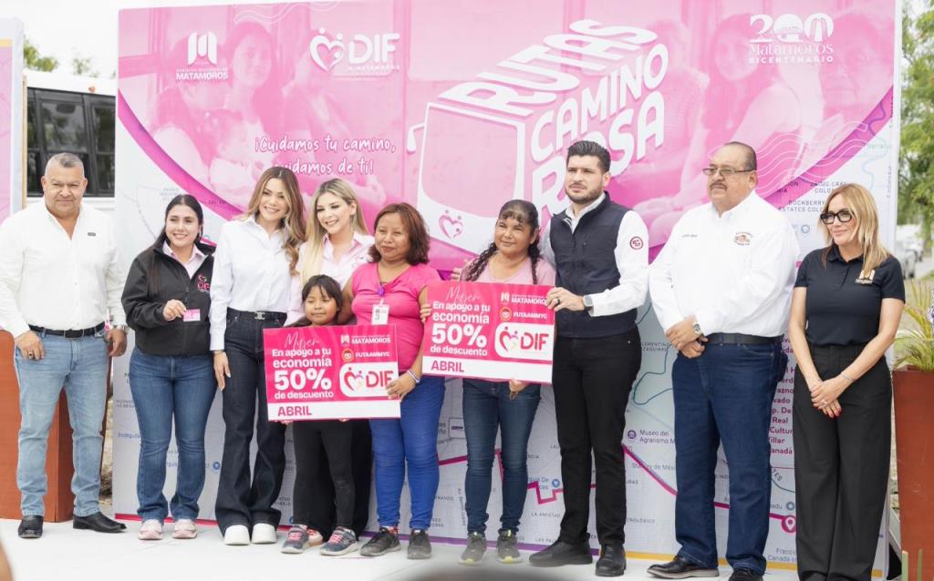 Matamoros, Tam.-En un paso histórico para la movilidad y seguridad de las mujeres matamorenses, el Sistema DIF Matamoros, liderado por la Lic. Ana Ariceaga de Granados, en compañía del Presidente Municipal, Lic. José Alberto Granados Favila, dieron el banderazo oficial a la “Ruta Camino Rosa”. Este proyecto, que iniciará operaciones el próximo lunes 13 de abril, surge como una solución estratégica para brindar traslados seguros, accesibles y con perspectiva de género.