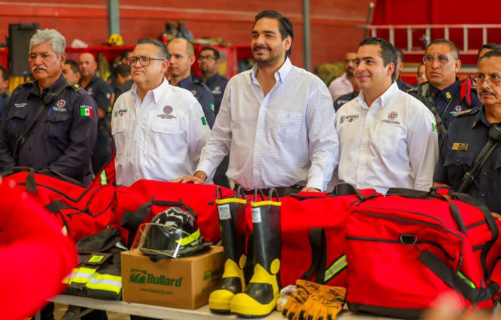 Reynosa, Tam.- Con la finalidad de dotar de más equipos para la seguridad personal de los elementos de Bomberos de Reynosa, el Presidente Municipal Carlos Peña Ortiz entregó al Coordinador de Protección Civil, Javier Iván Lam Cantú los utensilios vitales para el desarrollo de su labor, Casco, Escafandra, Chaquetón, Tirantes, Guantes, Pantalonera, Botas y mochila para transportarlos.