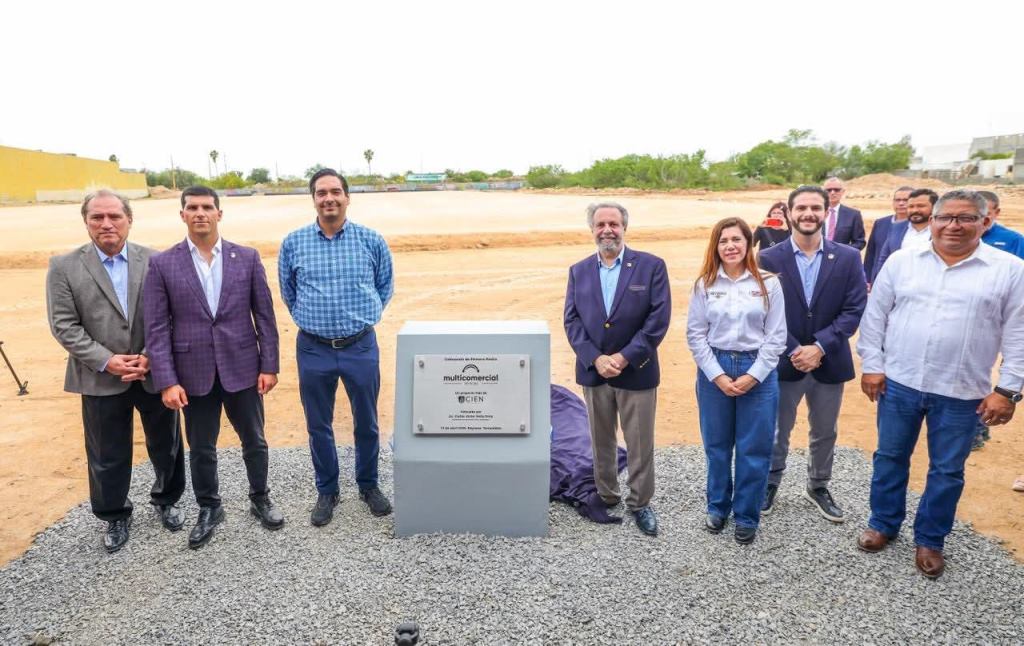 Reynosa, Tam.- El Presidente Municipal Carlos Peña Ortiz destacó la importancia de la inversión en Multicomercial Reynosa, de Cien Grupo Inmobiliario que encabeza Estiben Handal Dabdoub, con quien develó la primera piedra del nuevo concepto de inversión productiva que se desarrolla en el fraccionamiento Villas de Esmeralda.