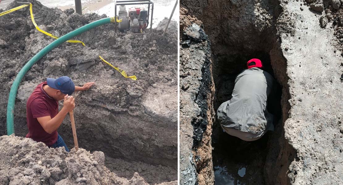Reynosa, Tam.- Por instrucciones del alcalde Carlos Peña Ortiz, la Comisión Municipal de Agua Potable y Alcantarillado de Reynosa llevó a cabo trabajos de reparación de fugas de agua potable en distintos puntos de la ciudad, con el objetivo de evitar el desperdicio del vital líquido y mejorar el servicio para la ciudadanía.