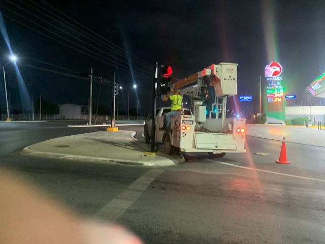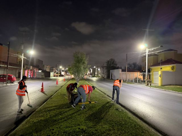 Reynosa, Tam.- Con la implementación de las jornadas nocturnas para el mantenimiento y limpieza de la infraestructura pública, el Alcalde Carlos Peña Ortiz demuestra su compromiso con el bienestar de las familias reynosenses; en una noche de arduo trabajo las cuadrillas municipales atendieron alumbrado, instalación de boyas y otras mejoras en vialidad.