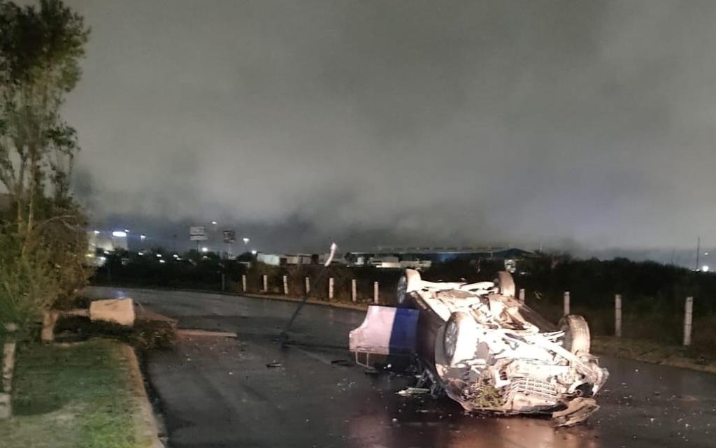 Reynosa, Tam.- Con las llantas hacia arriba quedó un vehículo al sufrir una volcadura frente a periférico por la avenida los encinos está madrugada.