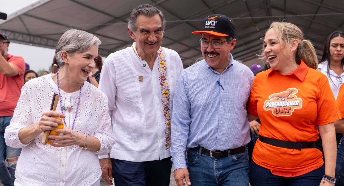 En ese marco, el rector Dámaso Anaya Alvarado y su esposa la Lic. Isolda Rendón de Anaya, recibieron al gobernador Américo Villarreal Anaya y a su esposa la Dra. María de Villarreal, quienes previamente habían inaugurado el evento y recorrido áreas como: La Salud, donde conocieron el Protocolo de Vacunación y los Objetivos de la Semana Nacional de Vacunación.
